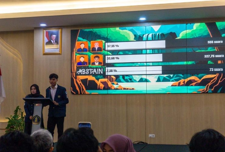 Penghitungan suara berlangsung setelah proses e-vote pada hari yang sama. Berdasarkan hasil final, paslon nomor urut 1 memperoleh 555 suara, disusul paslon nomor urut 2, Muhammad Maqdis Pilatya dan Amirul Mu’minin, dengan 327,75 suara, serta 73 suara abstain. Angka desimal diperoleh karena adanya pemotongan suara sebesar 5% atas pelanggaran kampanye yang dilakukan saat masa tenang.