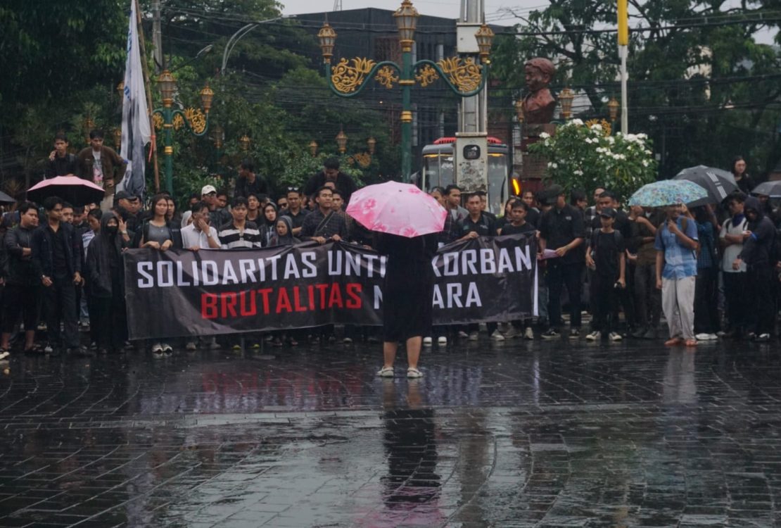 Ratusan mahasiswa yang tergabung dalam berbagai perguruan tinggi di Malang menggelar aksi solidaritas di kawasan Kayutangan, Kota Malang, Senin (23/2/2026). Aksi tersebut merupakan respons terhadap kasus kekerasan aparat yang menyebabkan meninggalnya Arianto Tawakal (14), pelajar asal Kota Tual, Maluku.